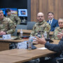 Under Secretary of the Air Force Matt Lohmeier engages in conversation with leadership from Air Force Materiel Command and the National Air and Space Intelligence Center during his visit to Wright-Patterson Air Force Base, Ohio, March 23, 2026. During the NASIC portion of Lohmeier’s visit, he interacted with the center’s leadership and experts to learn more about its mission and people. (A monitor in this image was masked for security reasons.) (U.S. Air Force photo by Senior Airman Chevelle K. Gauntlett)